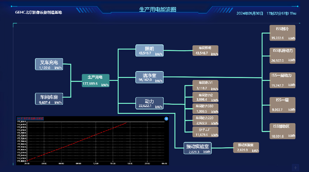 搭建能源監(jiān)測(cè)平臺(tái),將所有用電數(shù)據(jù)采集到平臺(tái)上,使各生產(chǎn)線及所有用電回路用電量清晰可見(jiàn)。根據(jù)用電量分析用電情況,查找節(jié)能空間,制定針對(duì)性的節(jié)能減碳的方案。