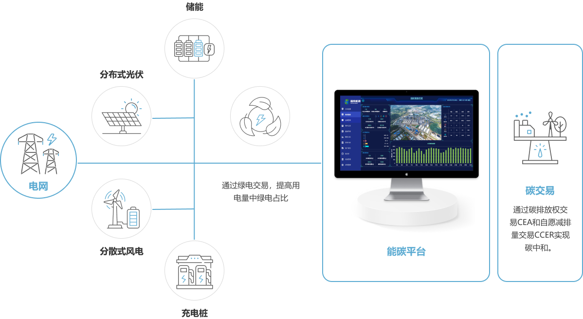 同步為客戶提供代購綠電、綠證、碳排放、碳配額等服務(wù),進(jìn)一步抵消客戶碳排放,以最終實(shí)現(xiàn)客戶碳排放為零的目標(biāo)。