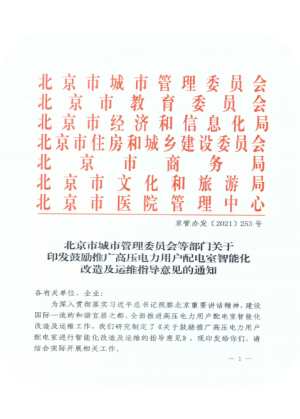 關(guān)于印發(fā)鼓勵推廣高壓電力用戶配電室智能化